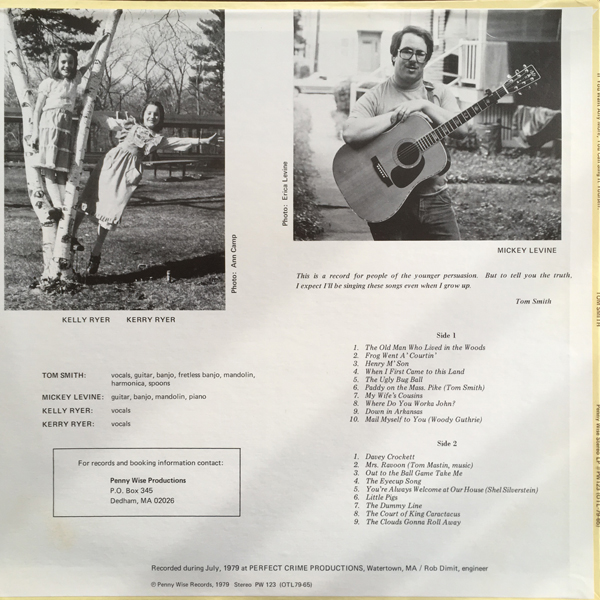 These 19 songs were recorded over two weekends in July of 1979, at “Perfect Crime Productions” in Watertown, Massachusetts. Mickey and I did our fourteen songs in the first weekend. Kelly and Kerry recorded five on the following weekend. My wife Margo was pregnant with our first child at the time, and I knew that if I didn’t record immediately it would probably never happen. My goal was to simply document the songs I was singing in my family folk shows, and also to capture my young friends Kelly and Kerry before they grew up. Happily, Kelly and Kerry are thriving adults now who both make music an integral part of their professional and personal lives – although their repertoires have evolved significantly.